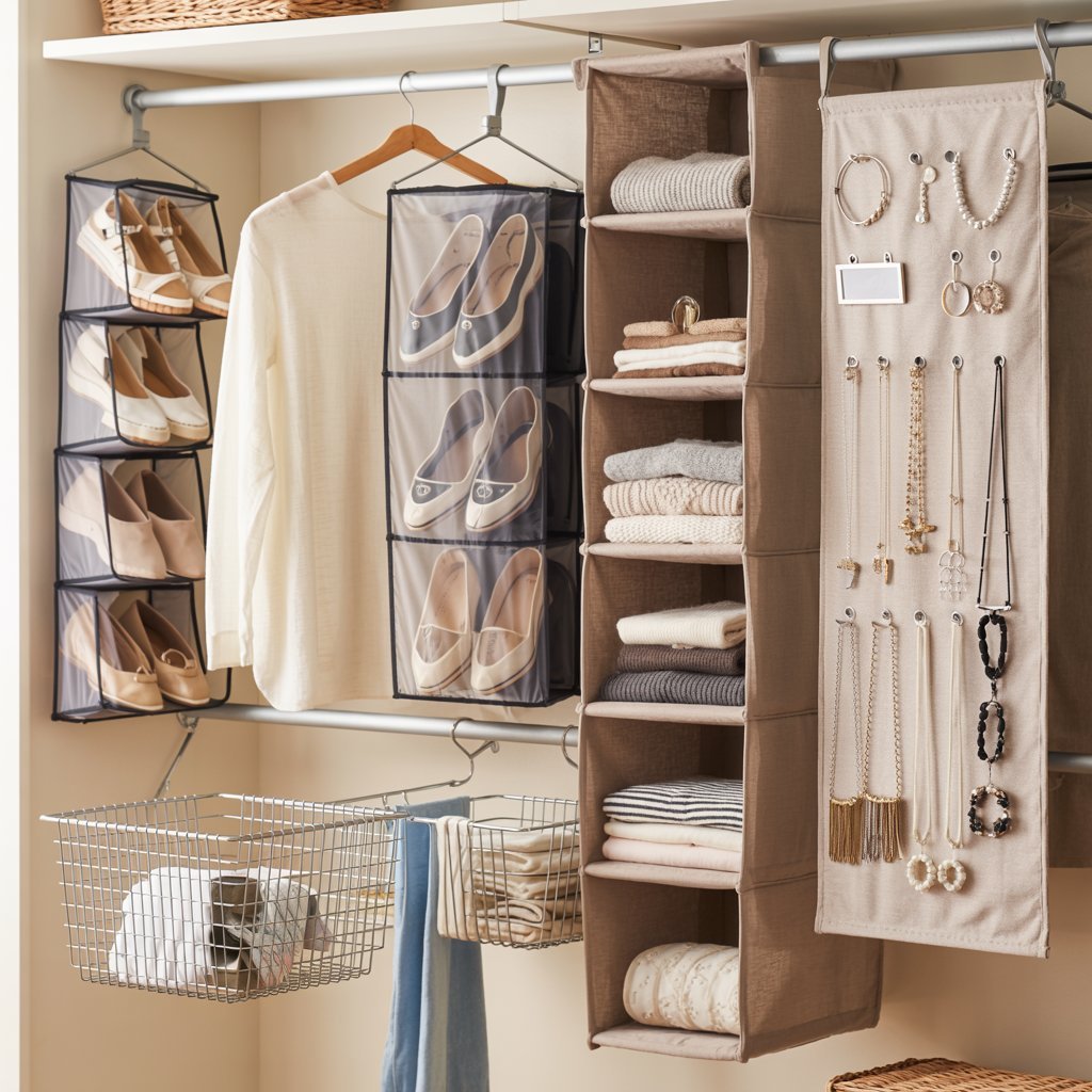 Great for shoes, accessories, or folded clothes. Hanging organizers maximize vertical space and keep items visible.