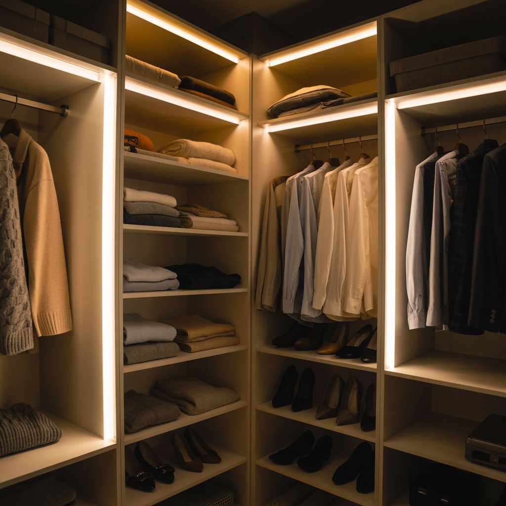 Illuminate dark corners of your closet with battery-operated LED lights. No wiring required!